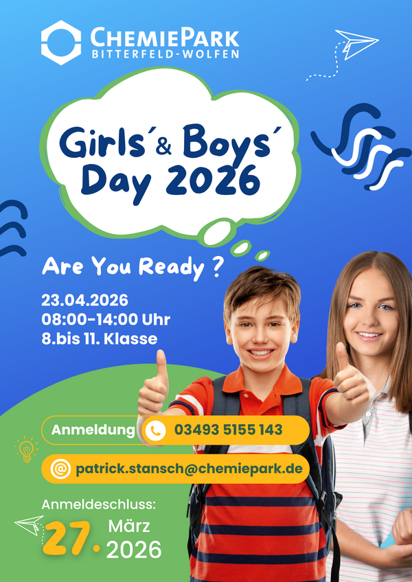 Auch 2026 wird die Chemiepark Bitterfeld-Wolfen GmbH wieder die Bildungsmesse anbieten und durchführen.